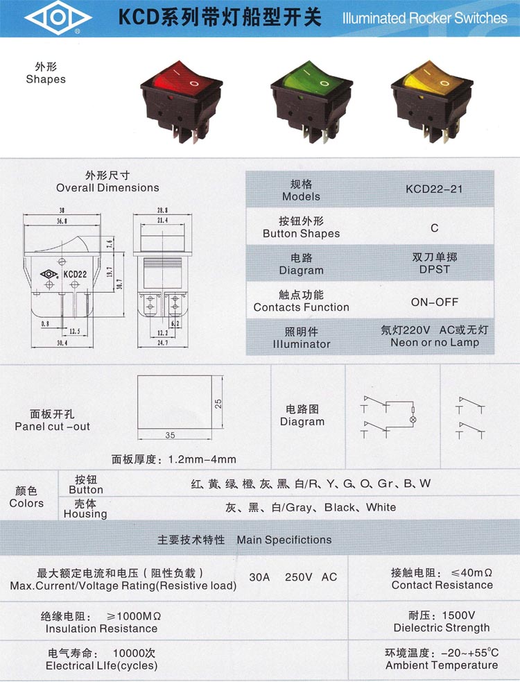 - KCD系列帶燈船型開關